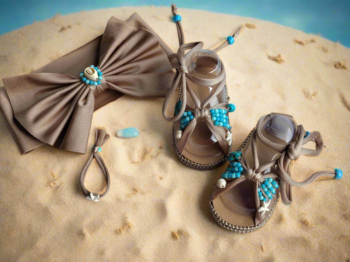 This big bow dress and beach theme sandals are the perfect gift for your little one.