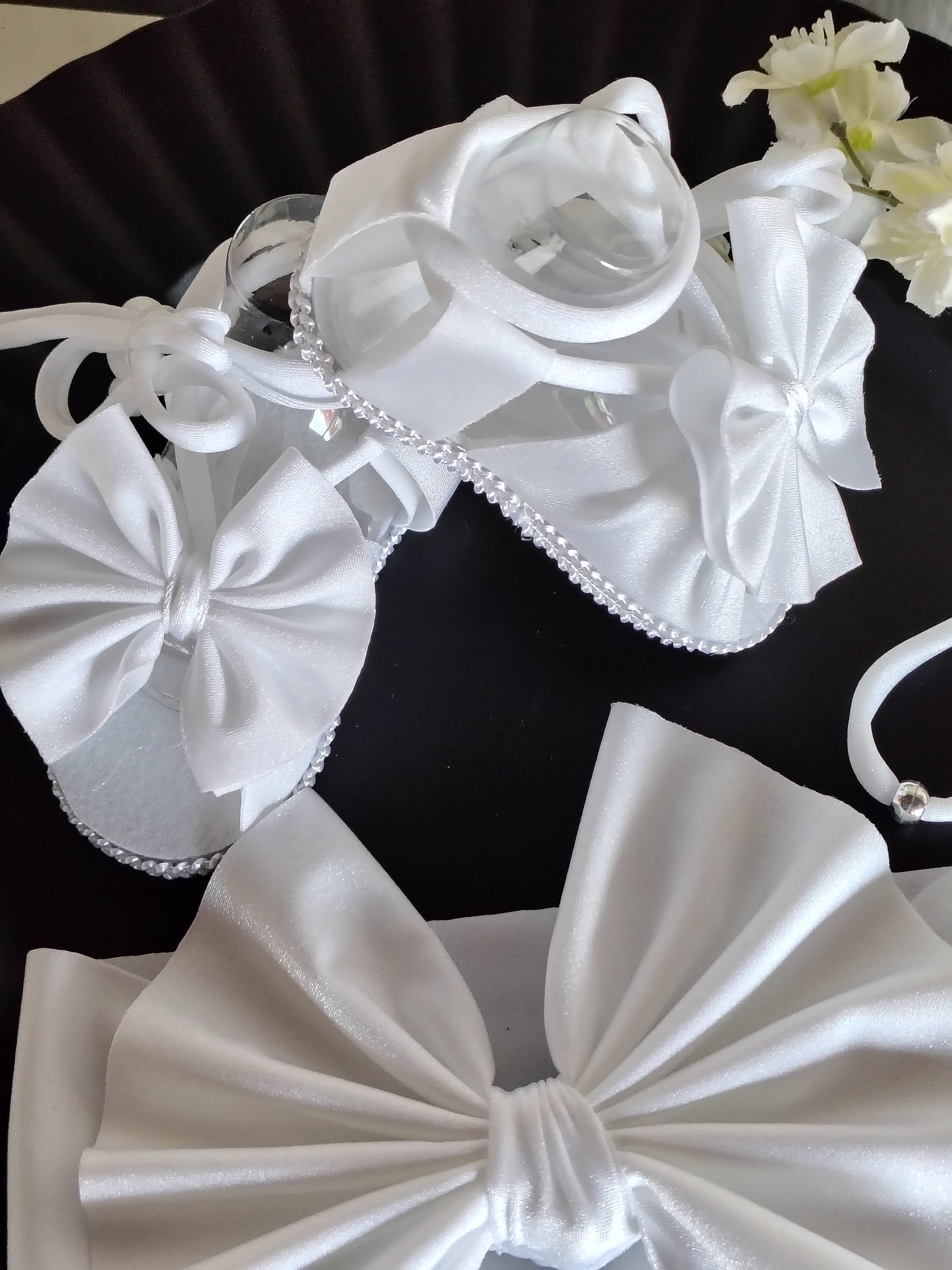 - Coordinating knotted baby sandals made with breathable fabric and non-slip soles.